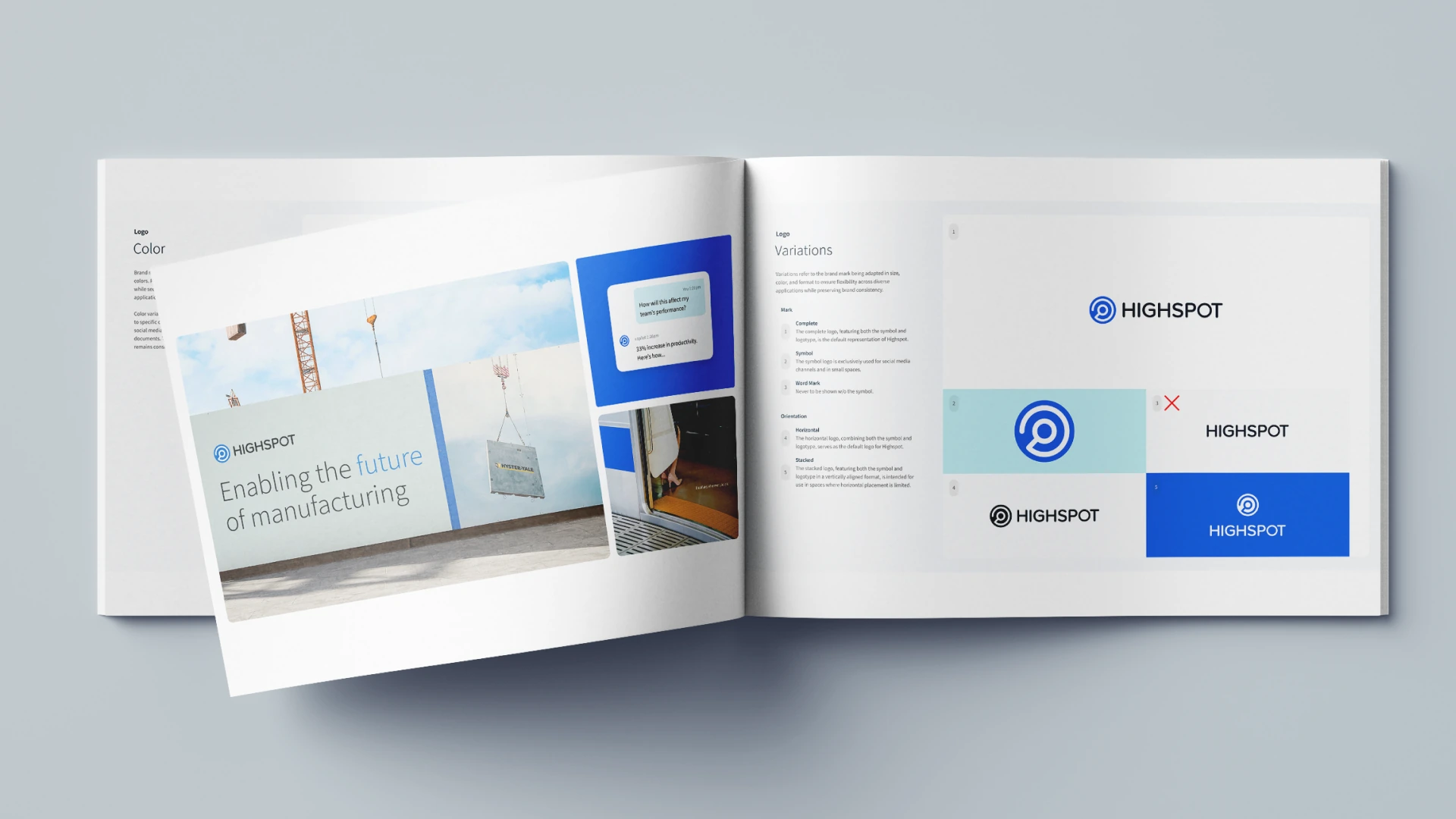 Highspot had grown significantly as a company, and the brand needed to catch up. With multiple product surfaces, marketing touchpoints, and an expanding global presence, the existing visual language lacked the cohesion and intentionality required to support the business at scale. The design team was tasked with building something from the ground up, a true design language that could serve as the foundation for every experience Highspot creates, from product UI to print collateral.