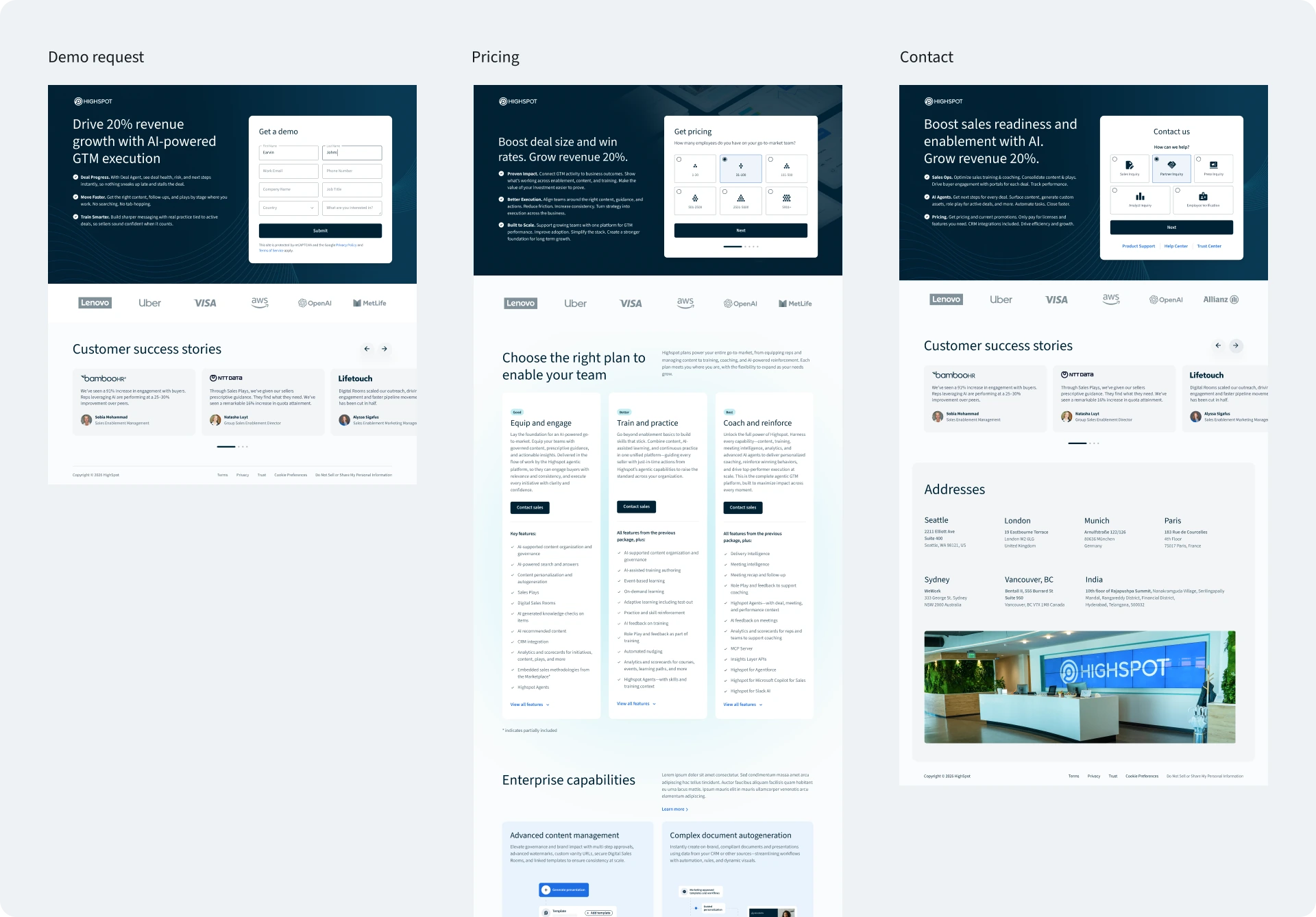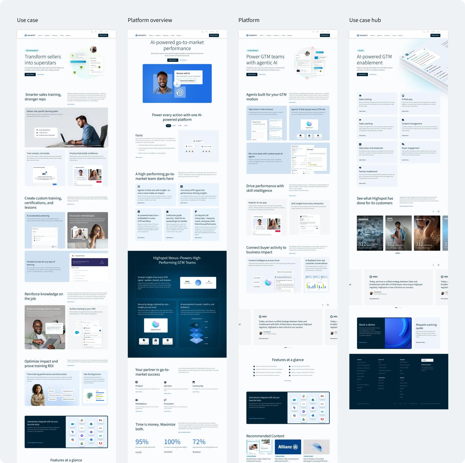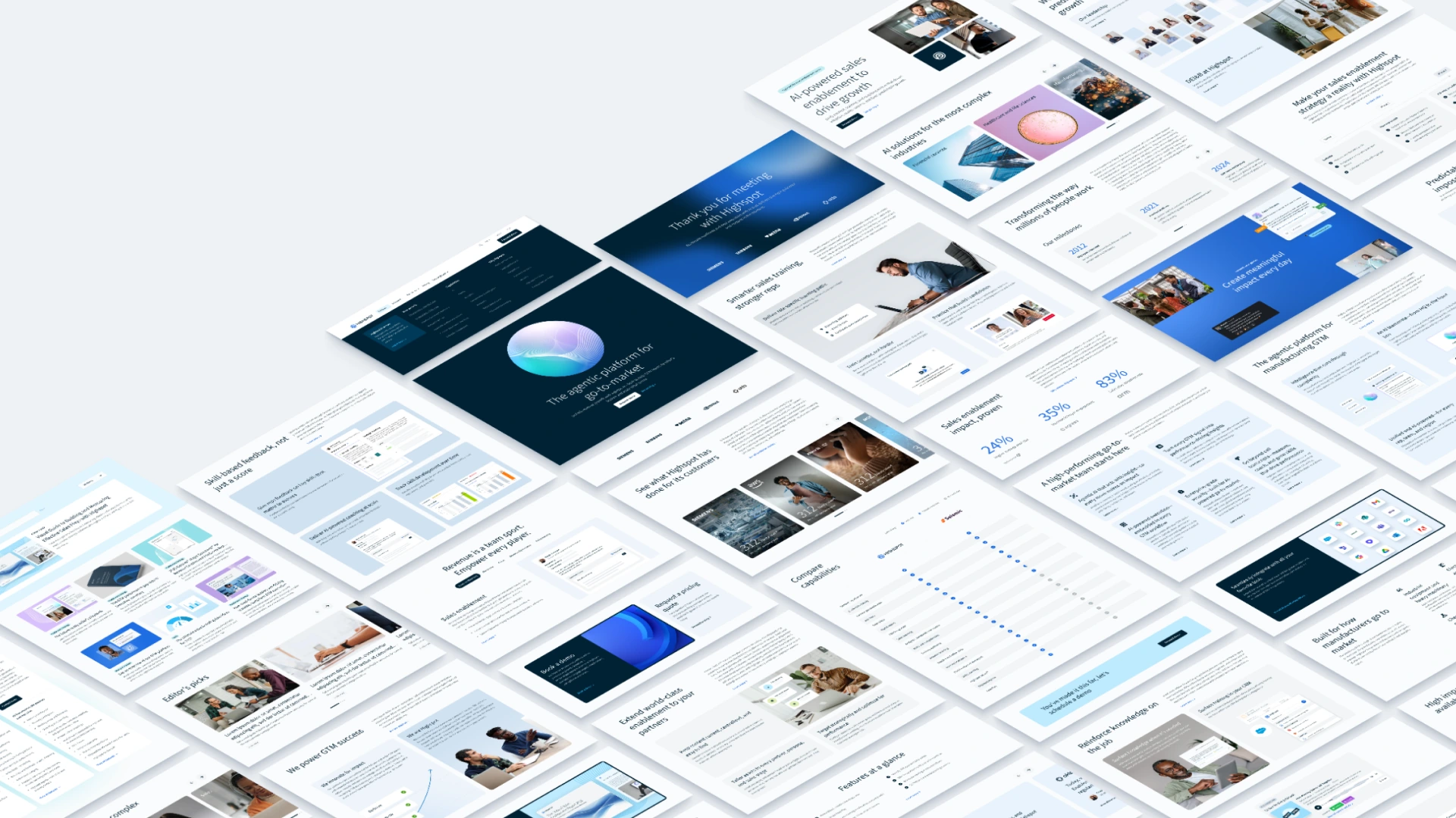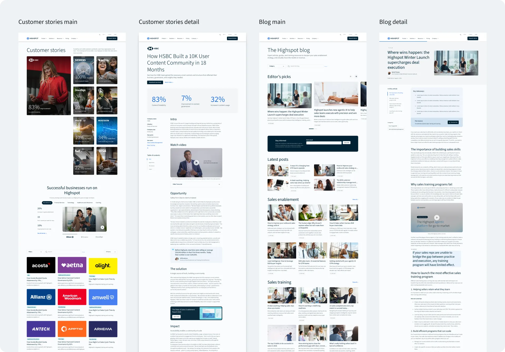 A comprehensive redesign of Highspot's entire digital ecosystem — unifying four web properties under a refreshed Arctic brand identity across 180+ pages and five locales.