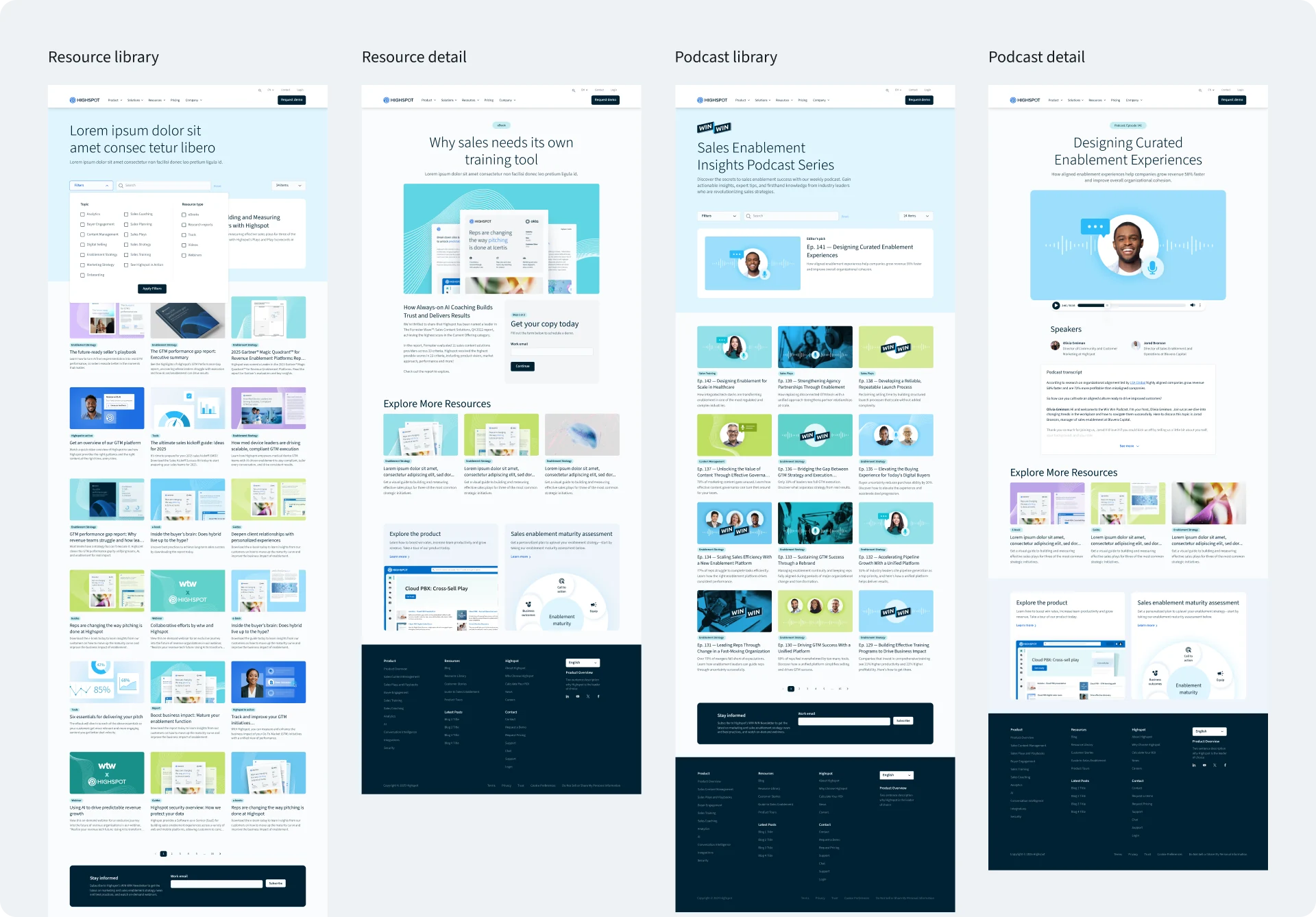 Designed and strategized a cohesive library ecosystem spanning resource, podcast, and events pages. Encompassing library and detail pages, gated conversion experiences, and filtering UX. Established card structure and visual consistency across all three libraries, and provided art direction for entirely new thumbnail strategies designed with localization in mind.