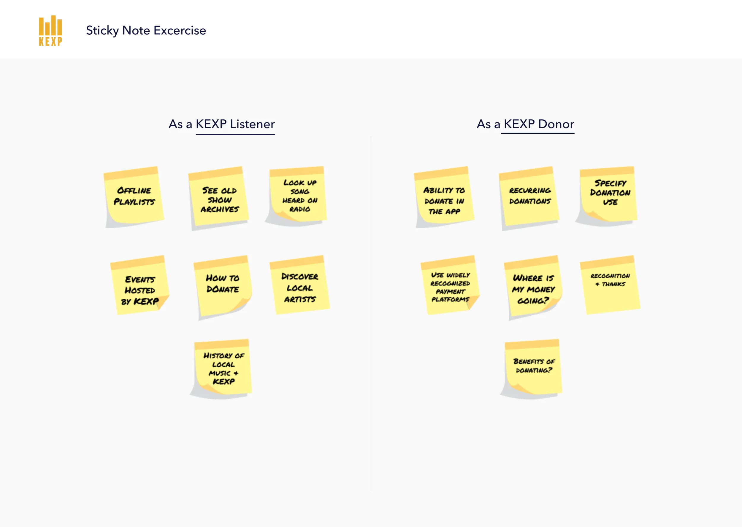 Thinking about interpreting an unclear or possibly misspelled requestThe existing app lacked engagement and didn't reflect the richness of what KEXP offers. Completed as part of the School of Visual Concepts UI/UX certificate program, the project focused on two clear priorities: making the donation flow more prominent and frictionless for loyal supporters, and surfacing KEXP's extensive show archives in a way that felt intuitive and inviting rather than buried.