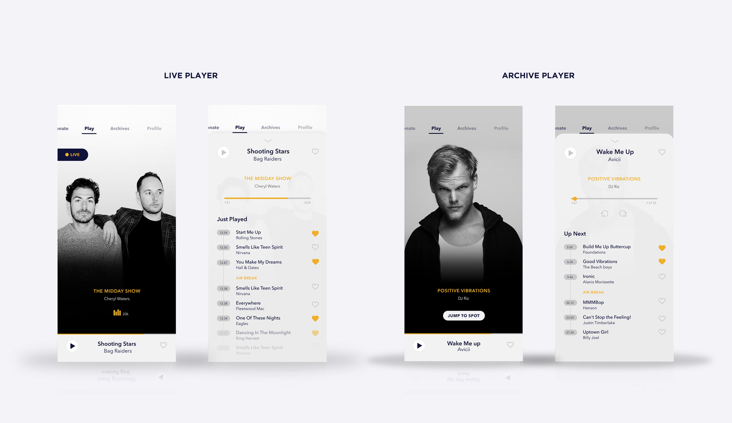 The project began with user flow mapping and persona development to understand the two primary audiences: regular listeners who browse and stream, and dedicated supporters who donate. A style guide and component foundations were established before moving into wireframes, ensuring design decisions were grounded in both brand and usability from the start.