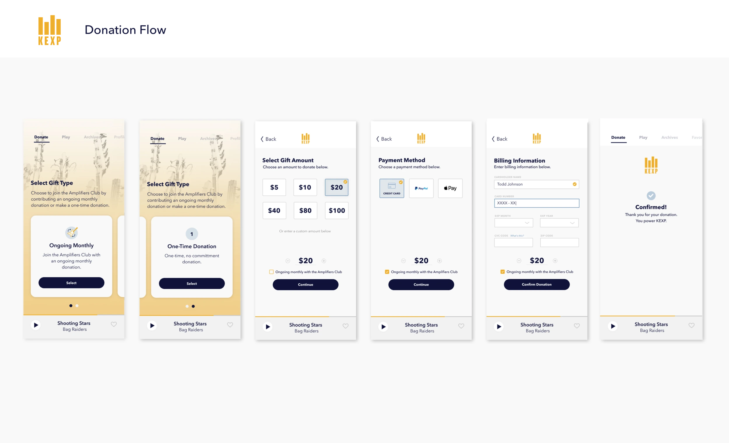 A mobile app redesign for KEXP, a nonprofit listener-supported radio station reaching over 200,000 global listeners weekly. The project focused on creating a more engaging experience that surfaced the depth of KEXP's show archives and made donating easier for the dedicated listeners who keep the station running.