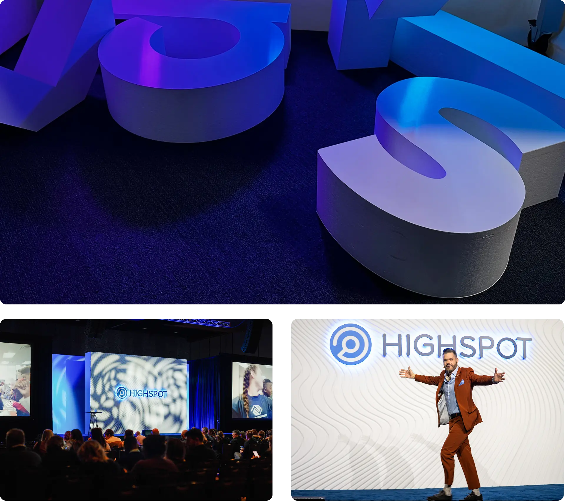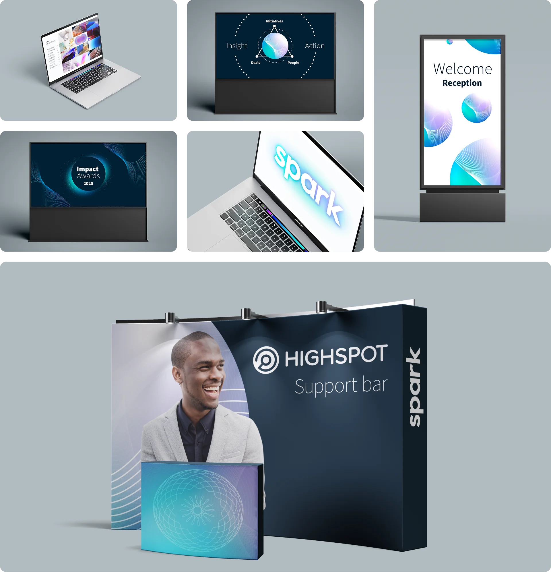 The event branding was developed by Highspot's expression team, creating a cohesive visual identity carried across every physical and environmental touchpoint at Spark 2025. The digital experience was designed in direct alignment with that identity, ensuring the site and registration flow felt like a natural extension of the event itself.